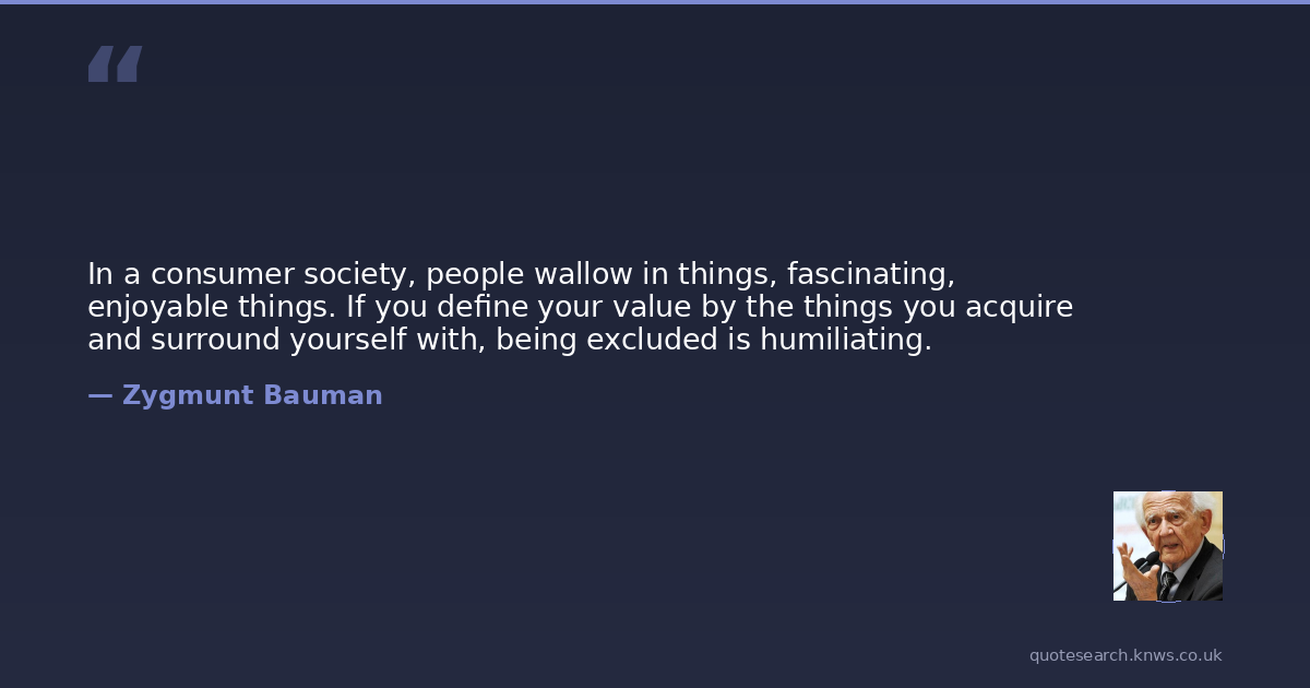 In a consumer society, people wallow in things, fascinating, enjoyable things. If you define your value by the things you acquire and surround yourself with, being excluded is humiliating.