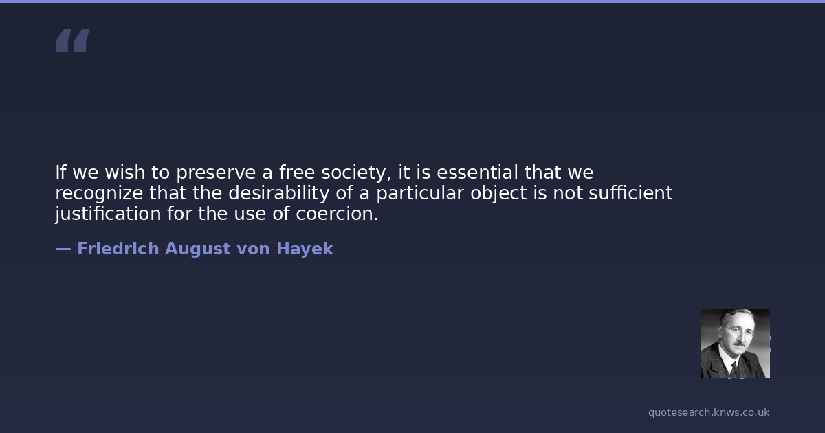 If we wish to preserve a free society, it is essential that we recognize that the desirability of a particular object is not sufficient justification for the use of coercion.
