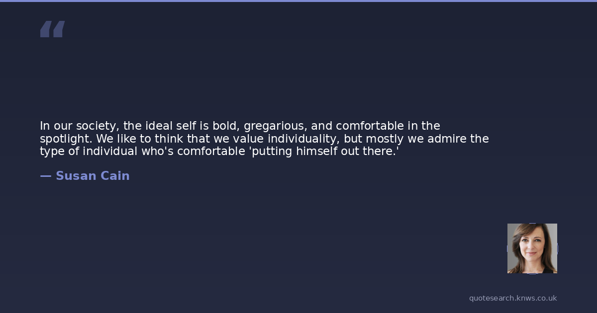 In our society, the ideal self is bold, gregarious, and comfortable in the spotlight. We like to think that we value individuality, but mostly we admire the type of individual who's comfortable 'putting himself out there.'