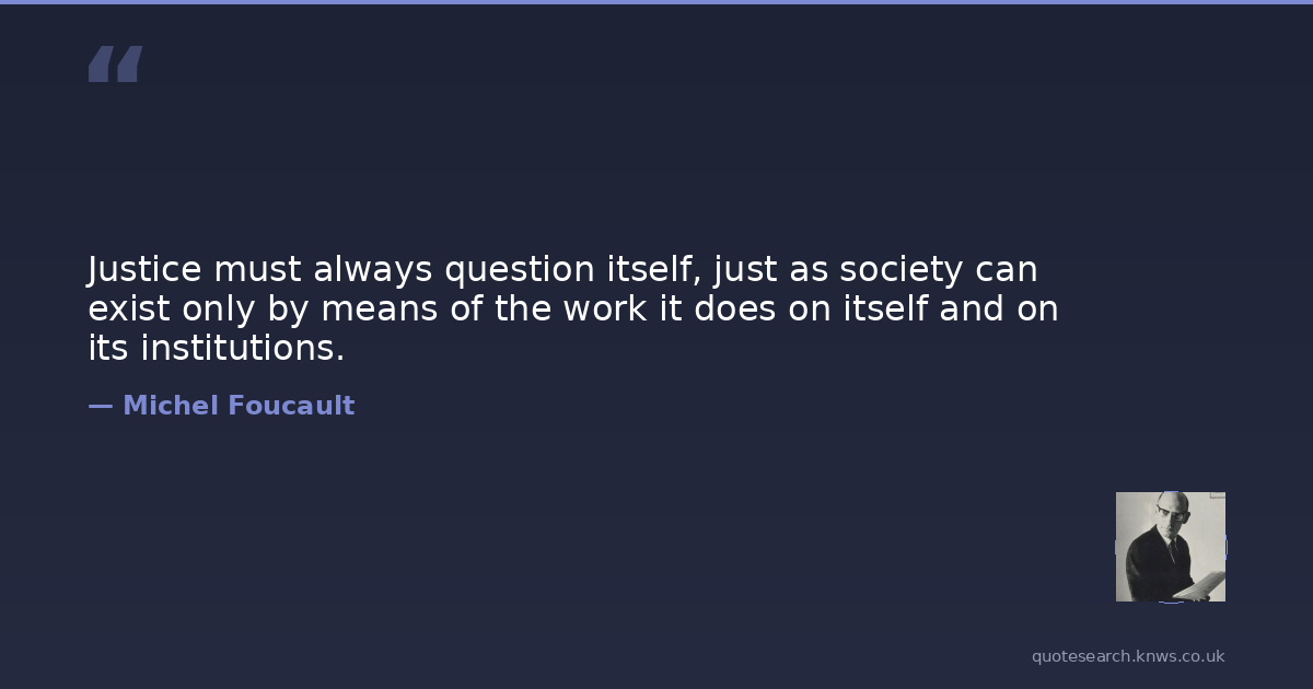 Justice must always question itself, just as society can exist only by means of the work it does on itself and on its institutions.