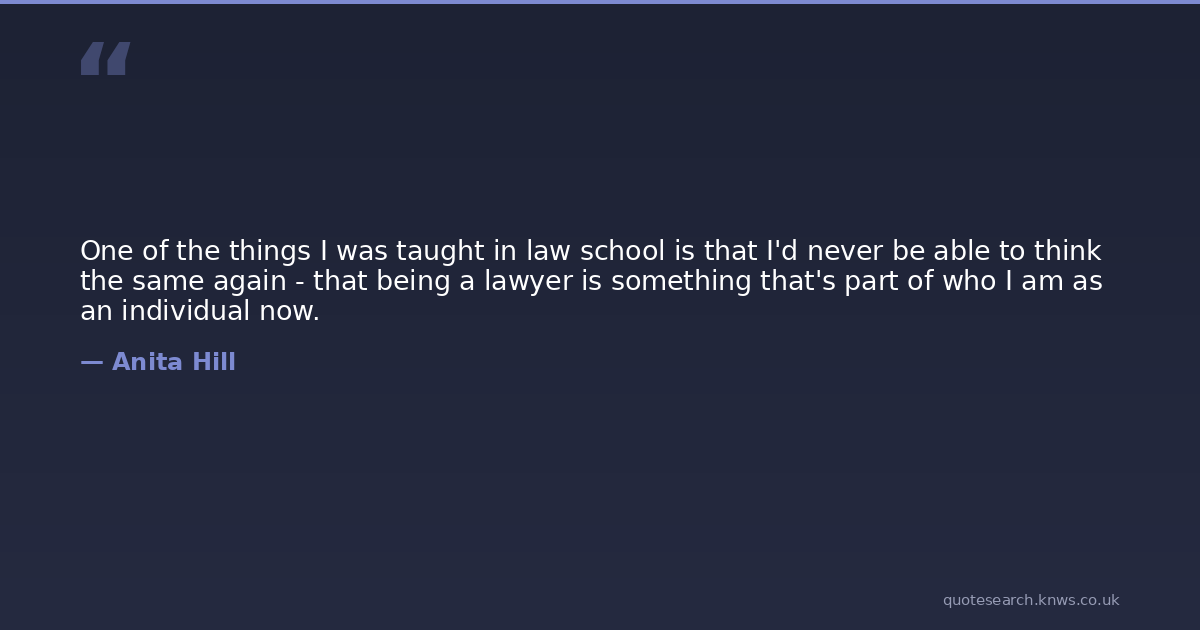 One of the things I was taught in law school is that I'd never be able to think the same again - that being a lawyer is something that's part of who I am as an individual now.