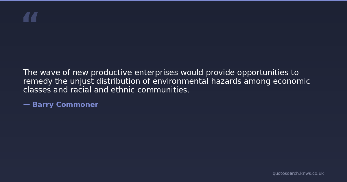 The wave of new productive enterprises would provide opportunities to remedy the unjust distribution of environmental hazards among economic classes and racial and ethnic communities.