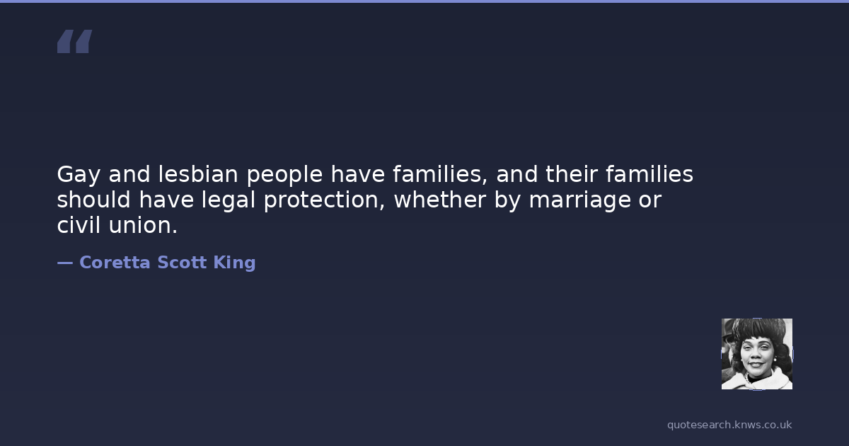 Coretta Scott King was a 20th-century American civil rights leader; wife of martin luther king jr.. Coretta Scott King was an American author, activist, and civil rights leader who was the wife of Martin Luther King Jr. from 1953 until his assassination in 1968. Read more on Wikipedia →