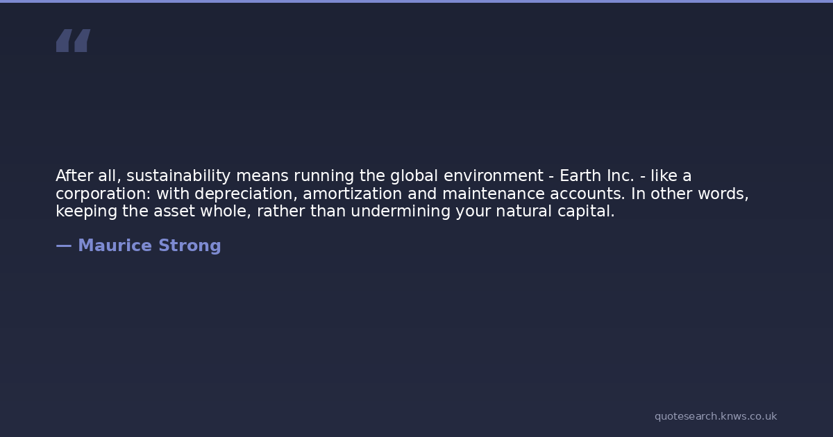 After all, sustainability means running the global environment - Earth Inc. - like a corporation: with depreciation, amortization and maintenance accounts. In other words, keeping the asset whole, rather than undermining your natural capital.