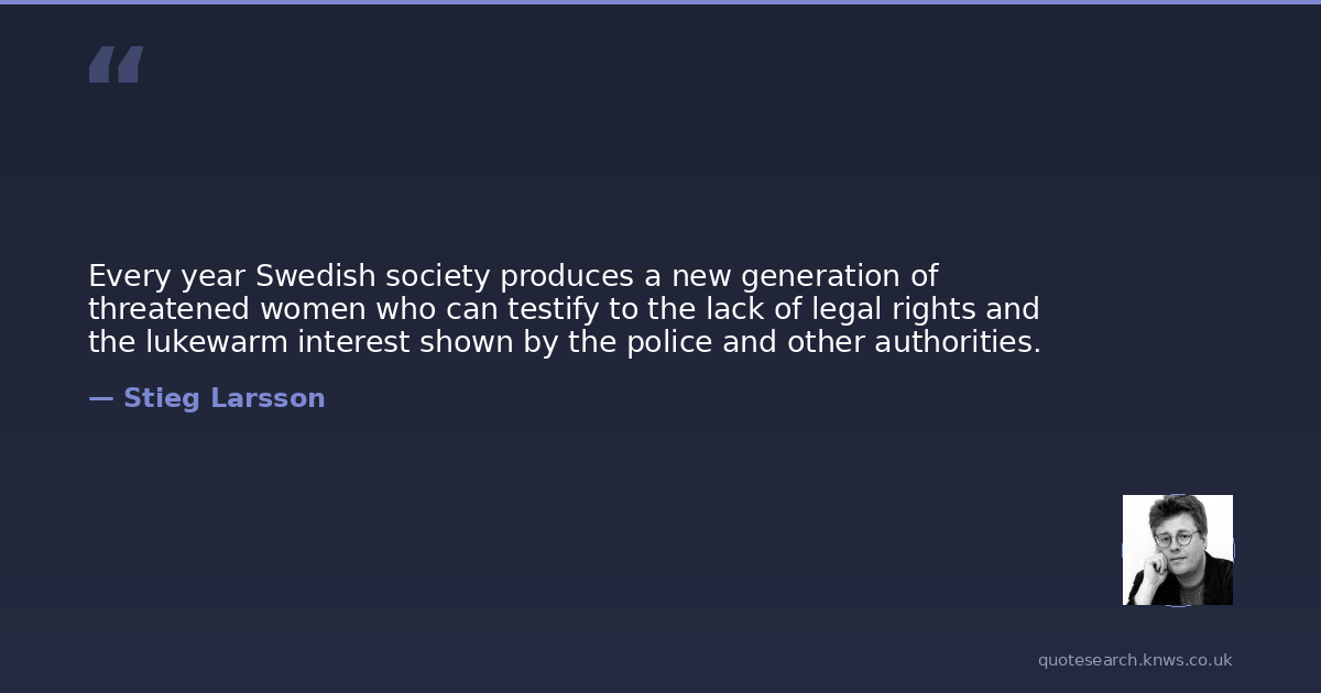 Every year Swedish society produces a new generation of threatened women who can testify to the lack of legal rights and the lukewarm interest shown by the police and other authorities.