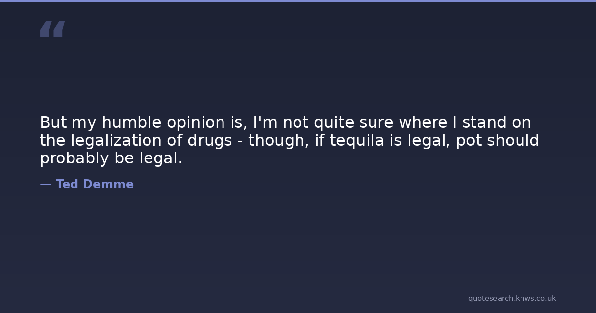 But my humble opinion is, I'm not quite sure where I stand on the legalization of drugs - though, if tequila is legal, pot should probably be legal.