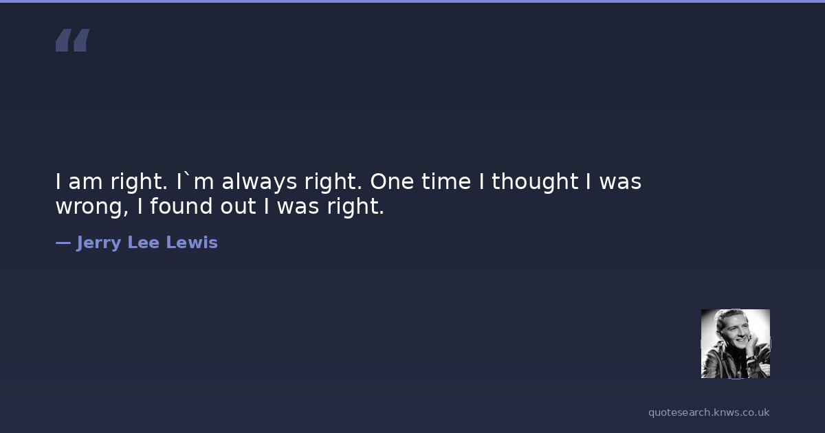 I am right. I`m always right. One time I thought I was wrong, I found out I was right.