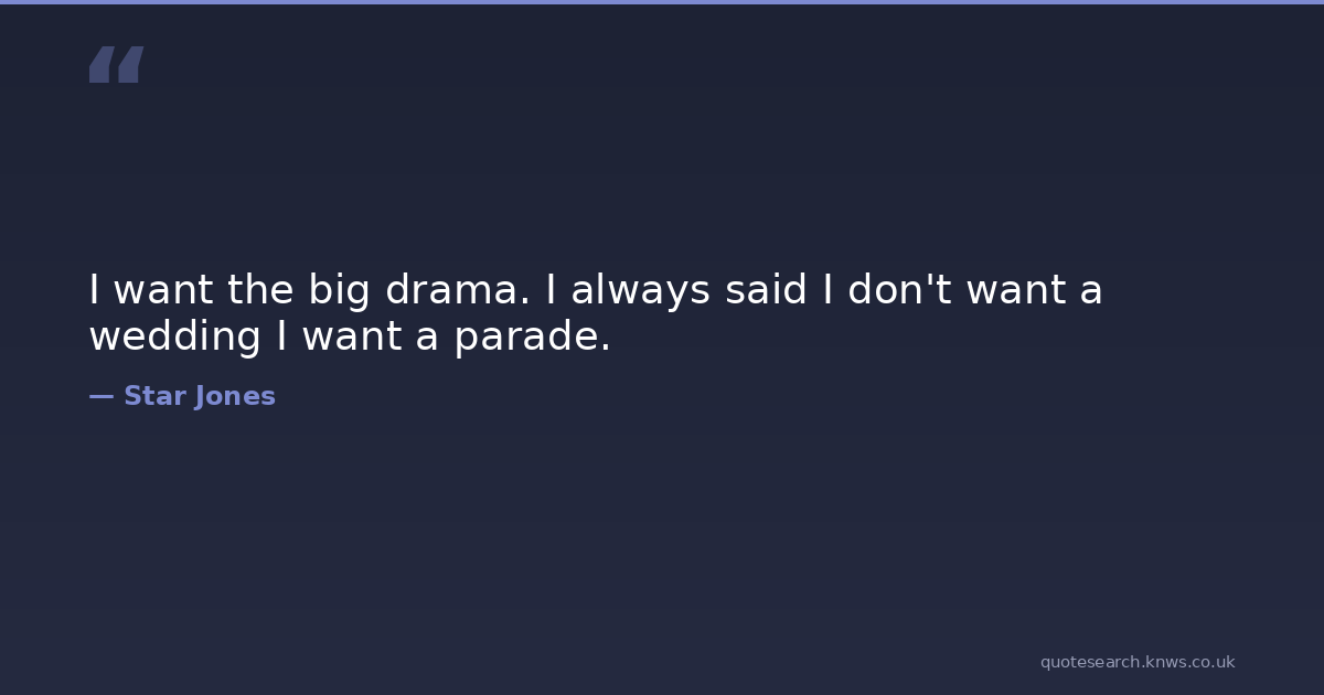 I want the big drama. I always said I don't want a wedding I want a parade. Want Drama Said Download Image Share on X Share on Facebook Copy Link