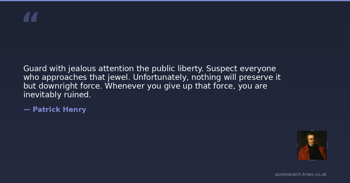 Guard with jealous attention the public liberty. Suspect everyone who approaches that jewel. Unfortunately, nothing will preserve it but downright force. Whenever you give up that force, you are inevitably ruined.