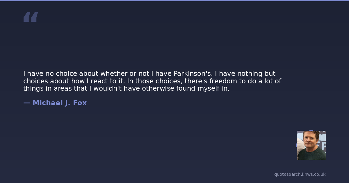 I have no choice about whether or not I have Parkinson's. I have nothing but choices about how I react to it. In those choices, there's freedom to do a lot of things in areas that I wouldn't have otherwise found myself in.