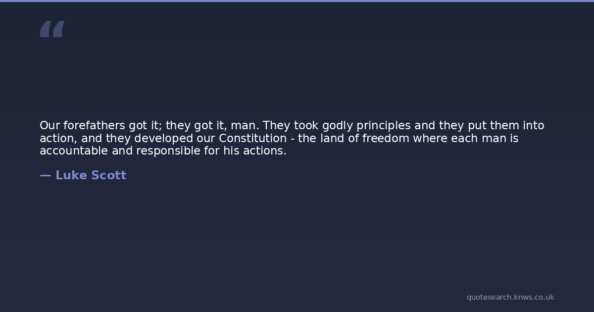 Our forefathers got it; they got it, man. They took godly principles and they put them into action, and they developed our Constitution - the land of freedom where each man is accountable and responsible for his actions.