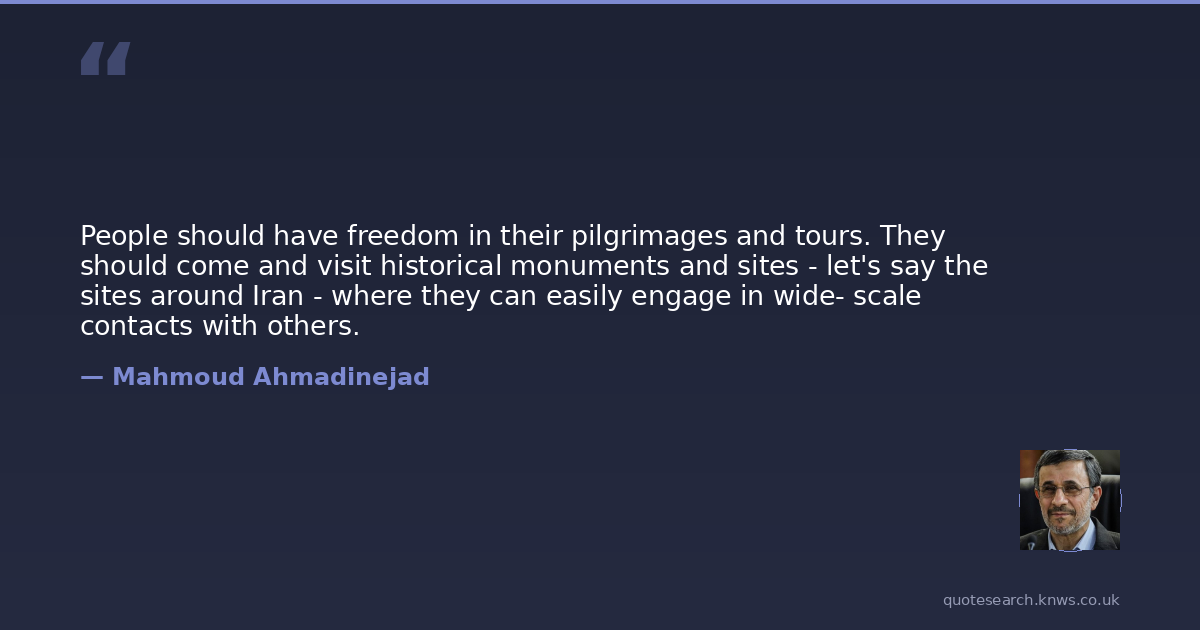 People should have freedom in their pilgrimages and tours. They should come and visit historical monuments and sites - let's say the sites around Iran - where they can easily engage in wide- scale contacts with others.