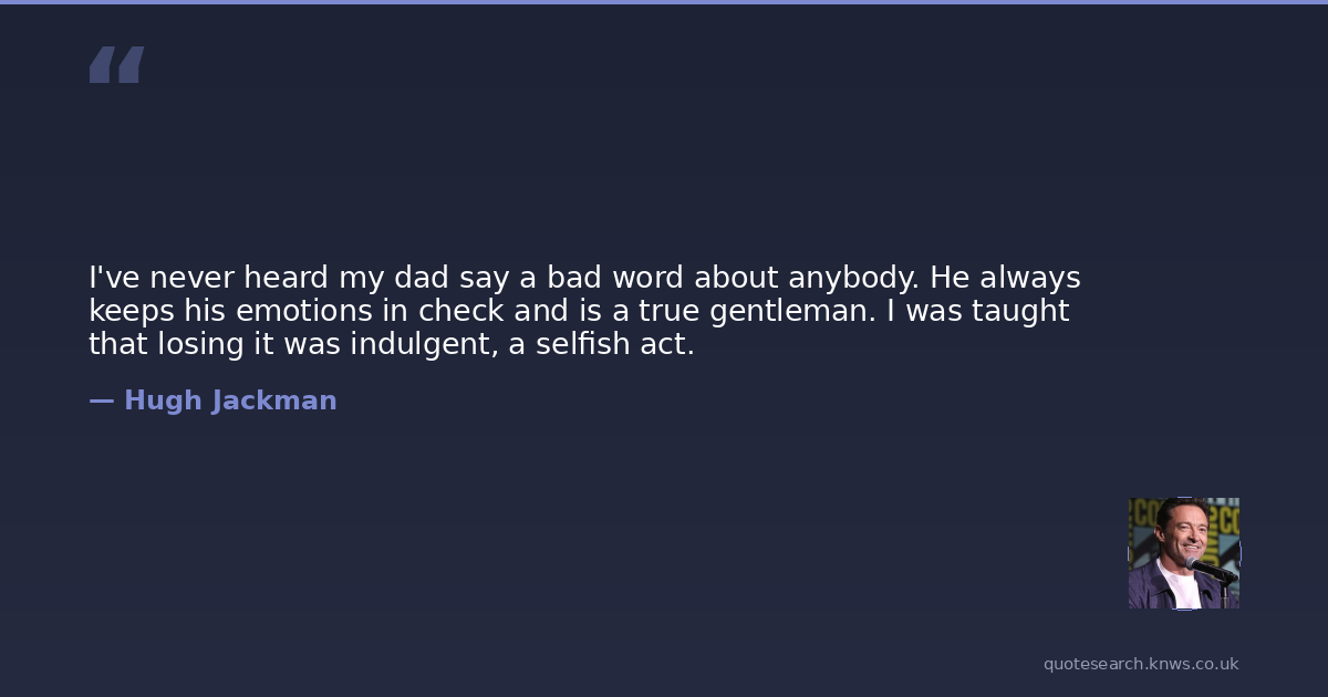 I've never heard my dad say a bad word about anybody. He always keeps his emotions in check and is a true gentleman. I was taught that losing it was indulgent, a selfish act.