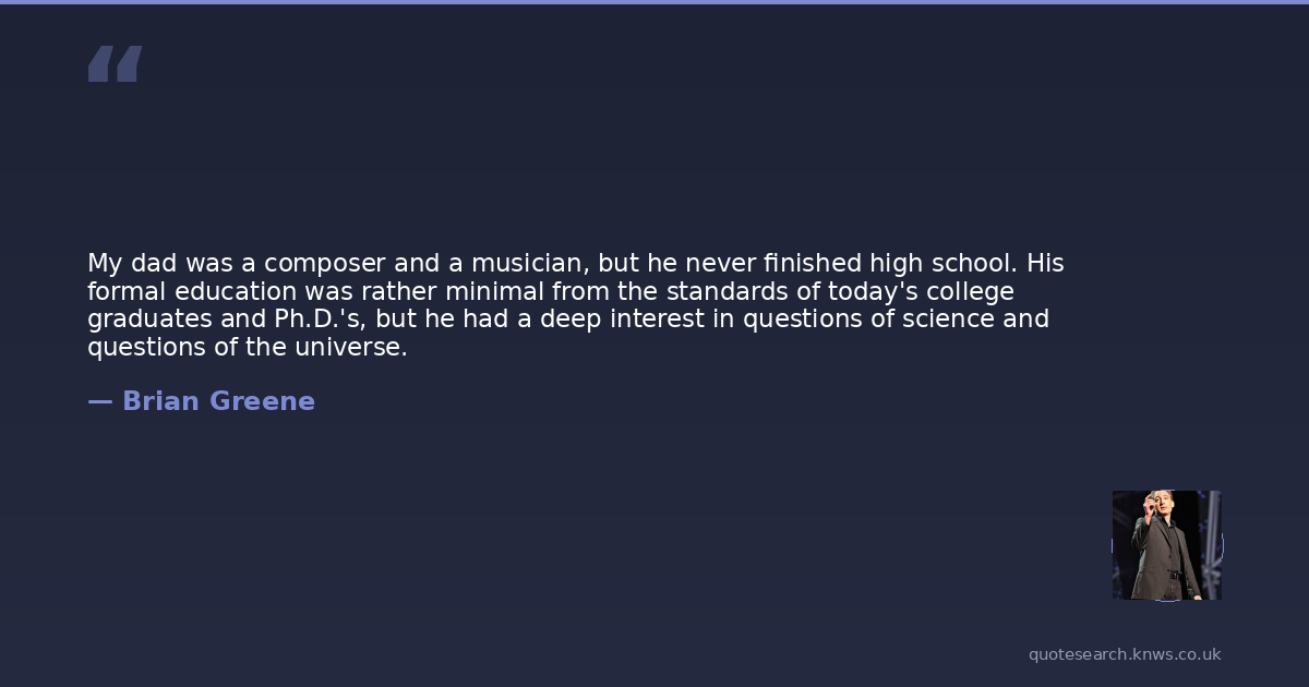 My dad was a composer and a musician, but he never finished high school. His formal education was rather minimal from the standards of today's college graduates and Ph.D.'s, but he had a deep interest in questions of science and questions of the universe.