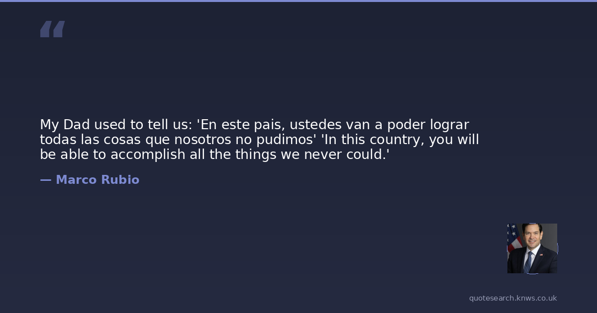 My Dad used to tell us: 'En este pais, ustedes van a poder lograr todas las cosas que nosotros no pudimos' 'In this country, you will be able to accomplish all the things we never could.'