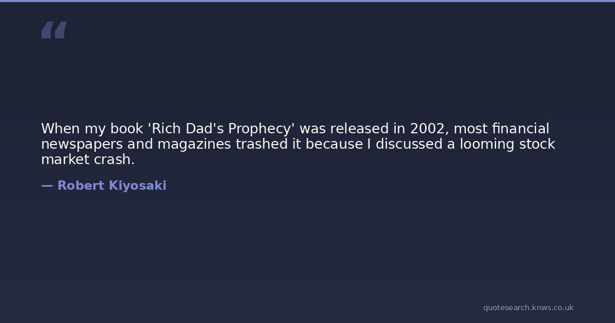 When my book 'Rich Dad's Prophecy' was released in 2002, most financial newspapers and magazines trashed it because I discussed a looming stock market crash.