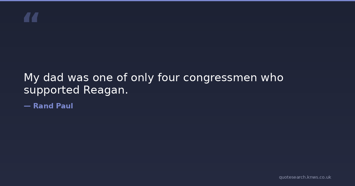 My dad was one of only four congressmen who supported Reagan. Four Only Who Download Image Share on X Share on Facebook Copy Link