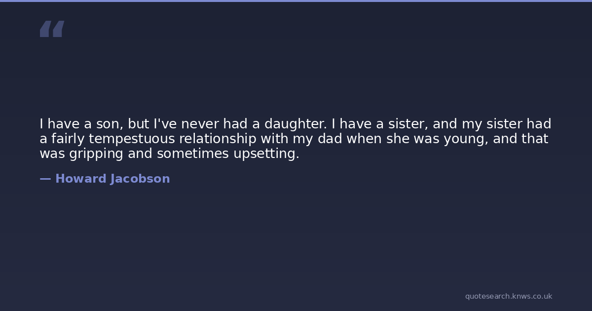 I have a son, but I've never had a daughter. I have a sister, and my sister had a fairly tempestuous relationship with my dad when she was young, and that was gripping and sometimes upsetting.