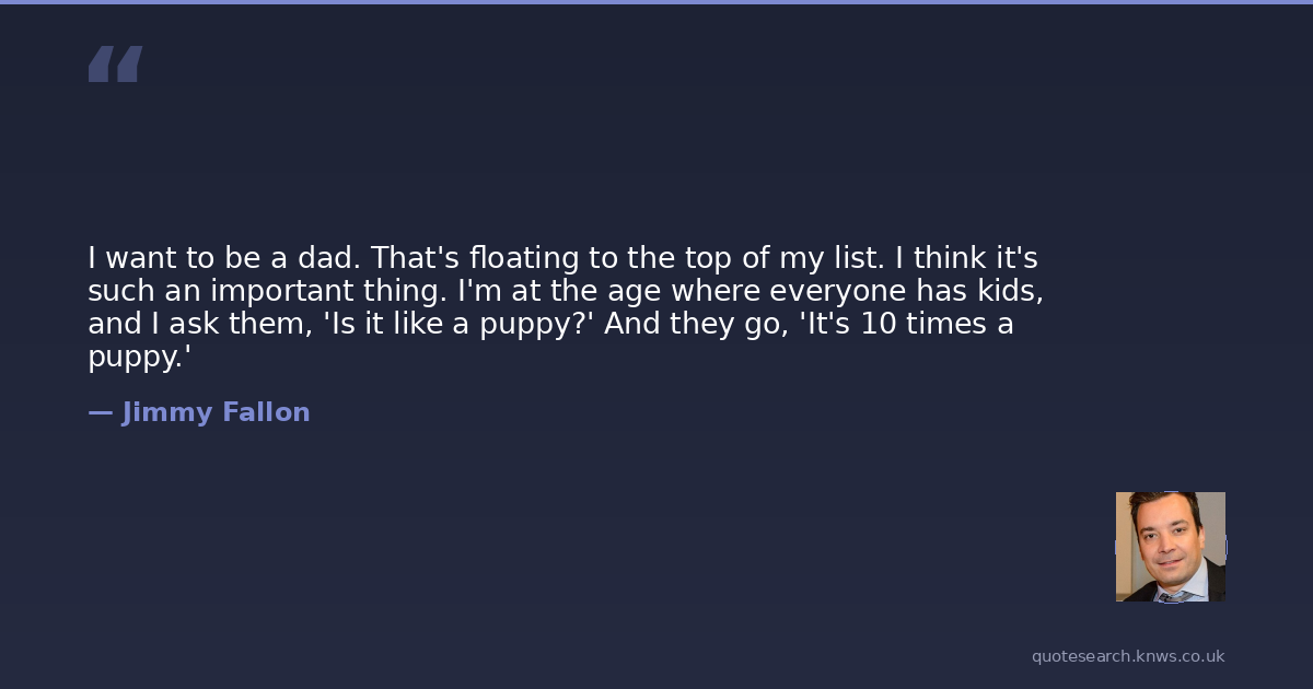 I want to be a dad. That's floating to the top of my list. I think it's such an important thing. I'm at the age where everyone has kids, and I ask them, 'Is it like a puppy?' And they go, 'It's 10 times a puppy.'