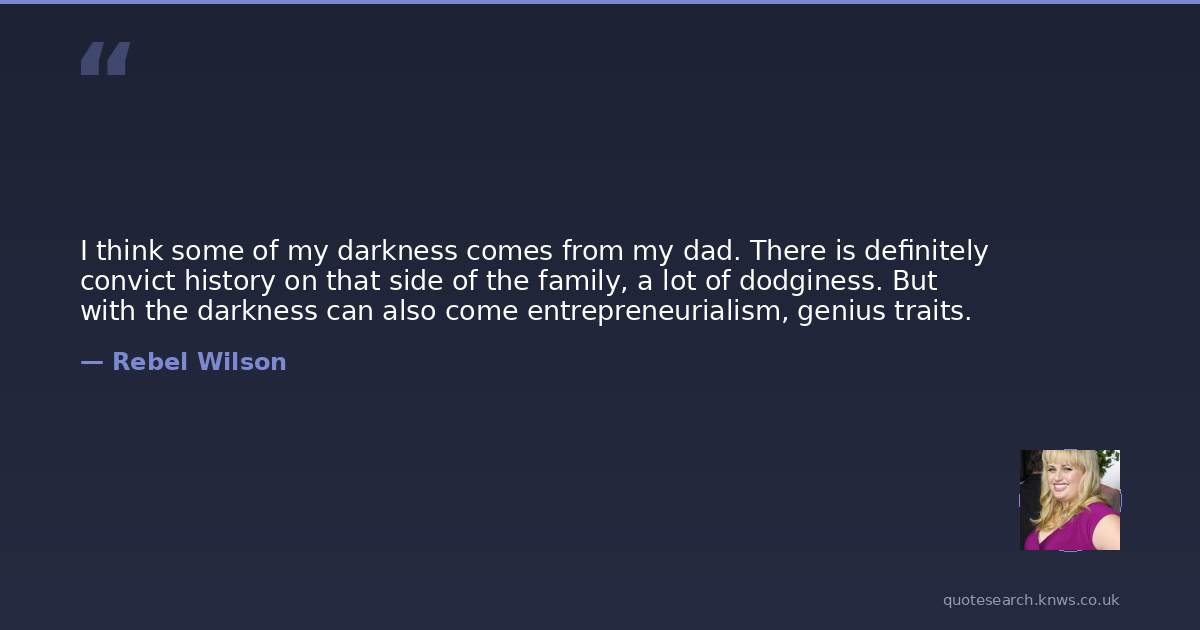 I think some of my darkness comes from my dad. There is definitely convict history on that side of the family, a lot of dodginess. But with the darkness can also come entrepreneurialism, genius traits.