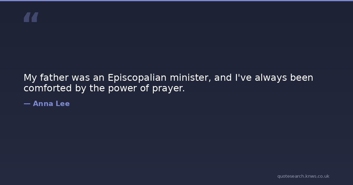 My father was an Episcopalian minister, and I've always been comforted by the power of prayer.