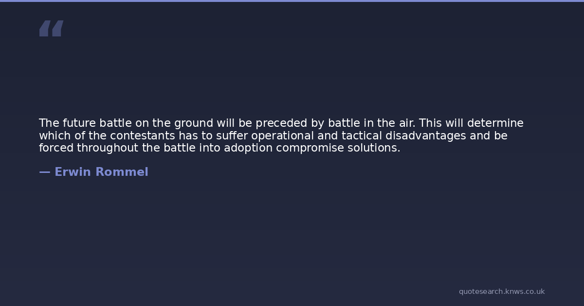 The future battle on the ground will be preceded by battle in the air. This will determine which of the contestants has to suffer operational and tactical disadvantages and be forced throughout the battle into adoption compromise solutions.