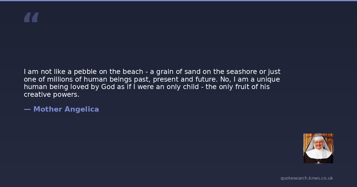 I am not like a pebble on the beach - a grain of sand on the seashore or just one of millions of human beings past, present and future. No, I am a unique human being loved by God as if I were an only child - the only fruit of his creative powers.