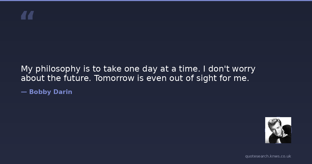 My philosophy is to take one day at a time. I don't worry about the future. Tomorrow is even out of sight for me.