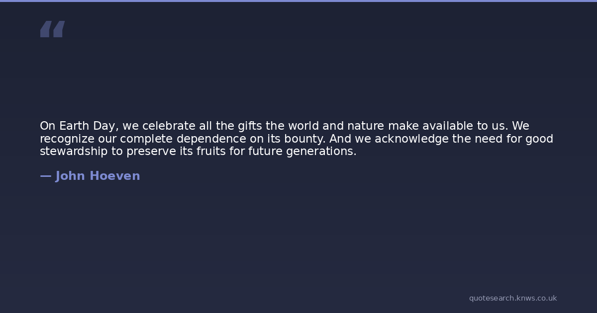 On Earth Day, we celebrate all the gifts the world and nature make available to us. We recognize our complete dependence on its bounty. And we acknowledge the need for good stewardship to preserve its fruits for future generations.