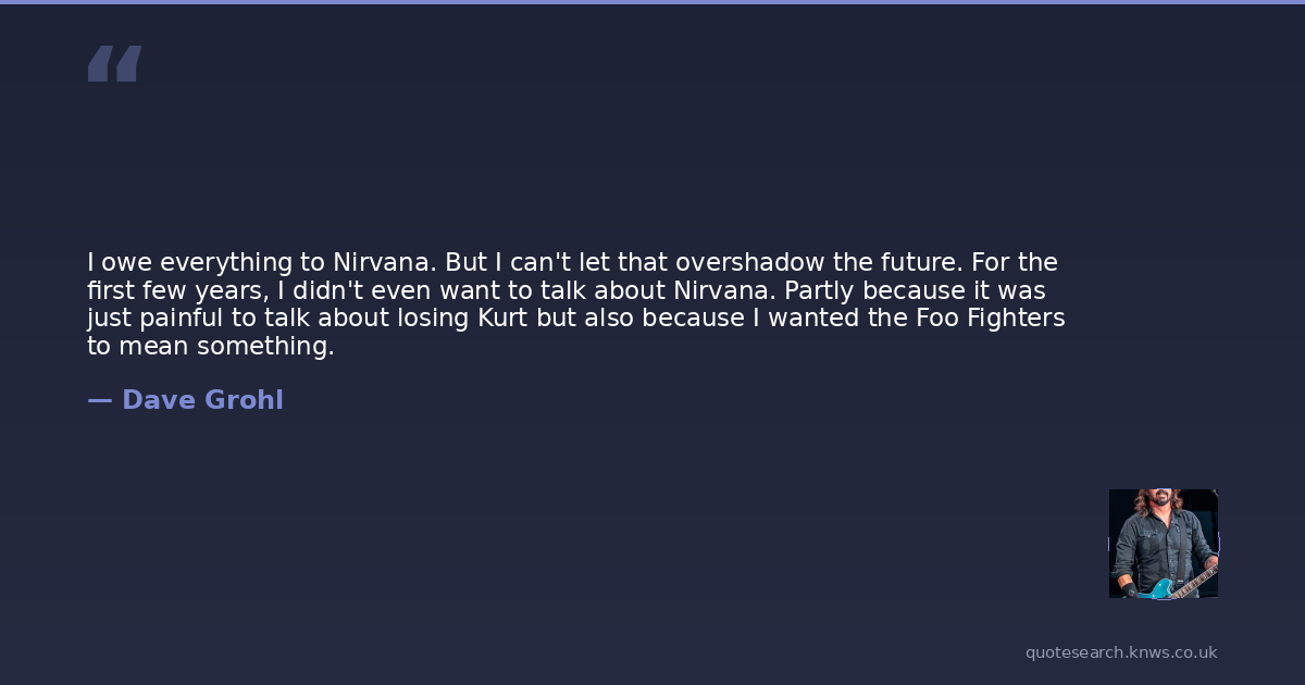 I owe everything to Nirvana. But I can't let that overshadow the future. For the first few years, I didn't even want to talk about Nirvana. Partly because it was just painful to talk about losing Kurt but also because I wanted the Foo Fighters to mean something.