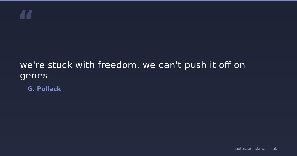 we're stuck with freedom. we can't push it off on genes. wisdom-quote Download Image Share on X Share on Facebook Copy Link