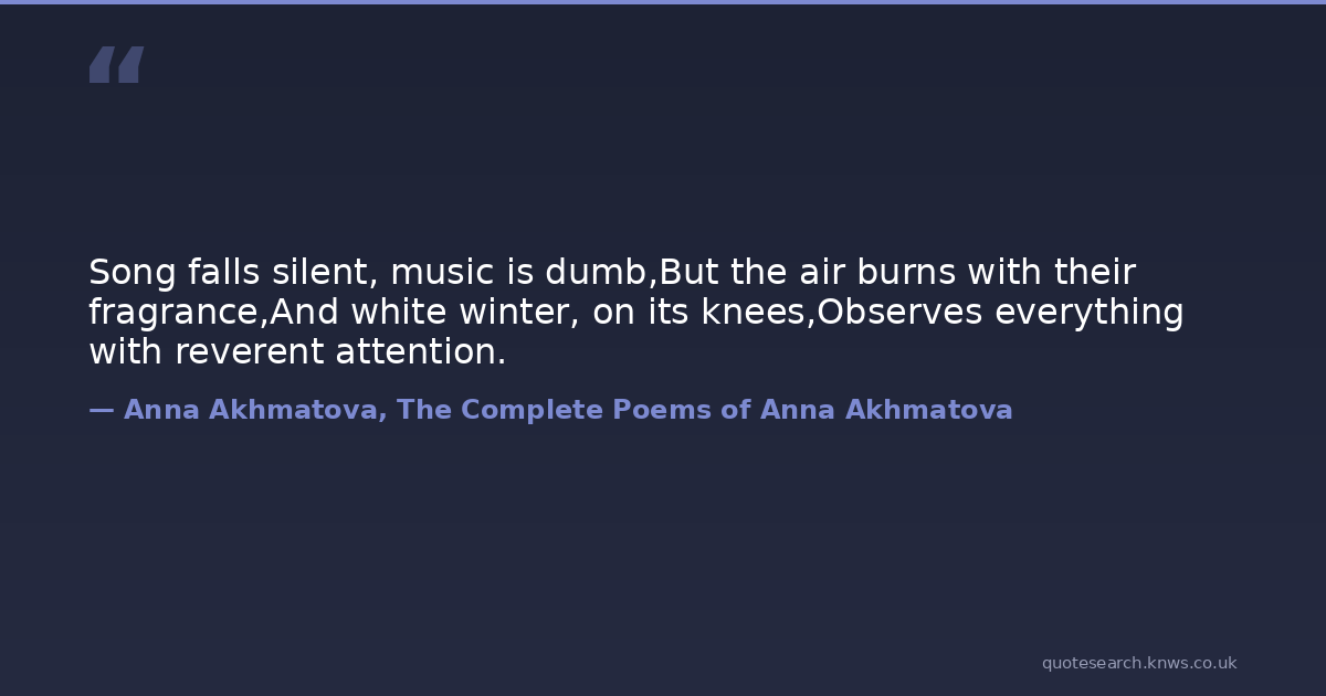 Song falls silent, music is dumb,But the air burns with their fragrance,And white winter, on its knees,Observes everything with reverent attention.