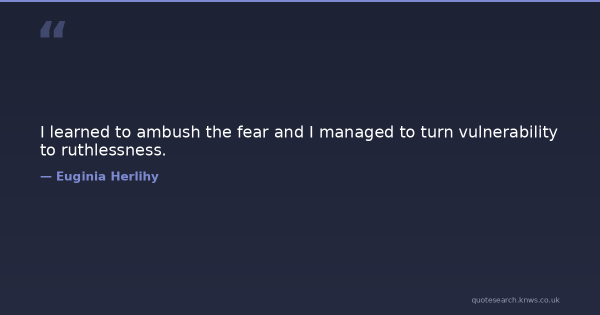 I learned to ambush the fear and I managed to turn vulnerability to ruthlessness. wisdom-quote Download Image Share on X Share on Facebook Copy Link