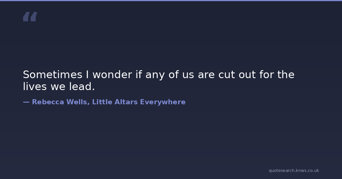 Sometimes I wonder if any of us are cut out for the lives we lead.