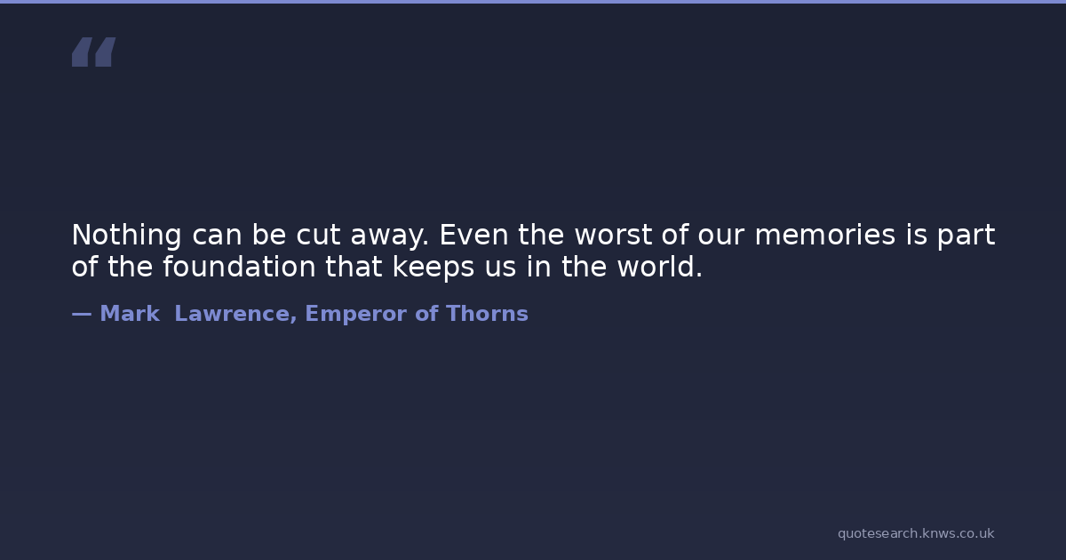 Nothing can be cut away. Even the worst of our memories is part of the foundation that keeps us in the world.