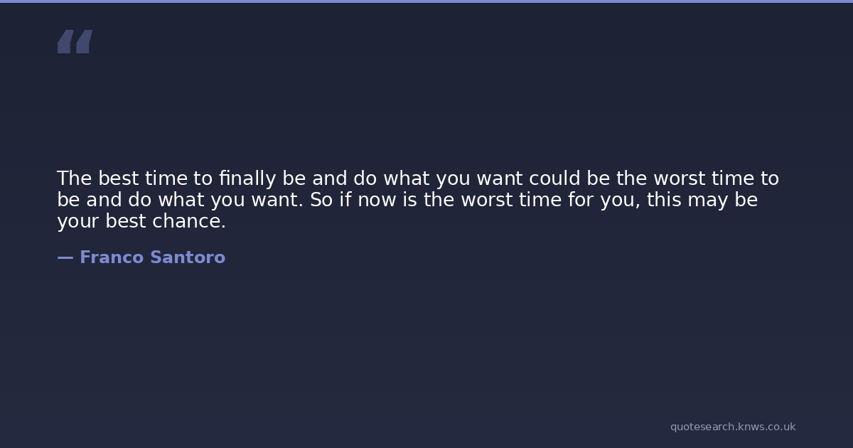 The best time to finally be and do what you want could be the worst time to be and do what you want. So if now is the worst time for you, this may be your best chance.