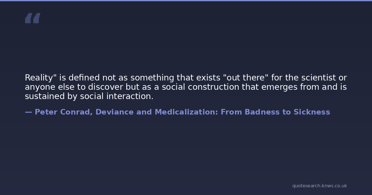 Reality" is defined not as something that exists "out there" for the scientist or anyone else to discover but as a social construction that emerges from and is sustained by social interaction.