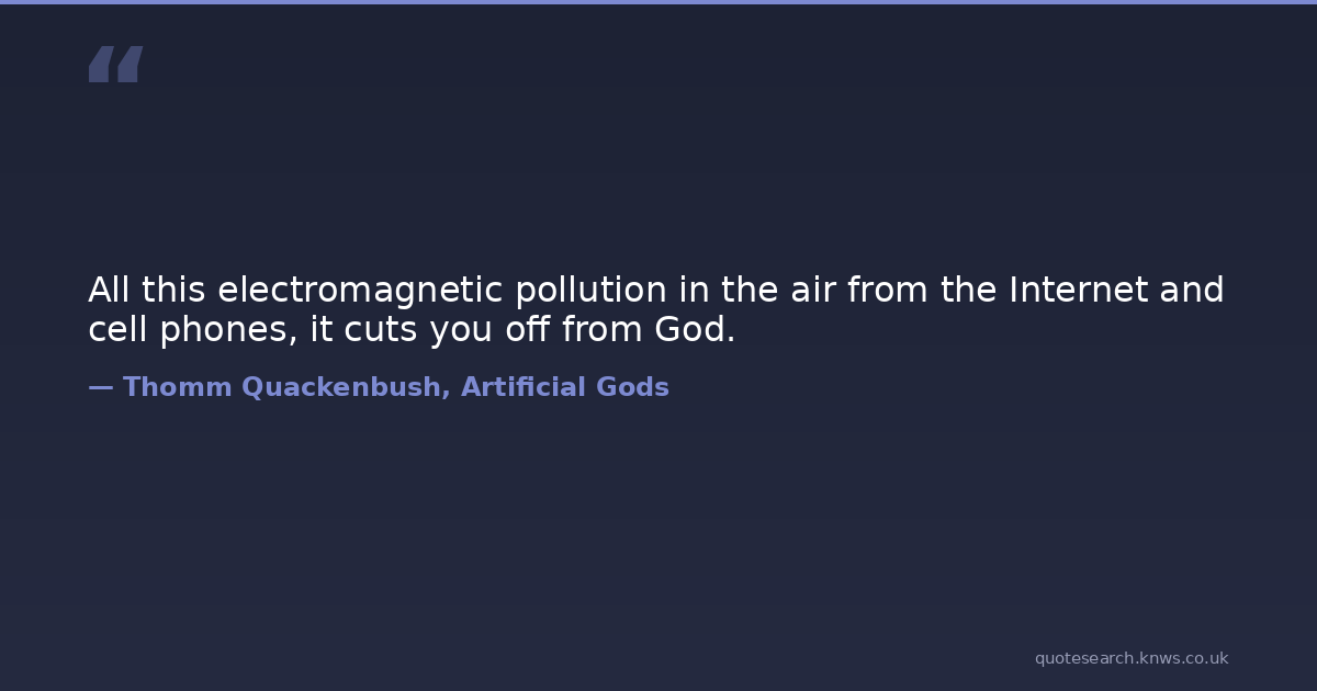 All this electromagnetic pollution in the air from the Internet and cell phones, it cuts you off from God.