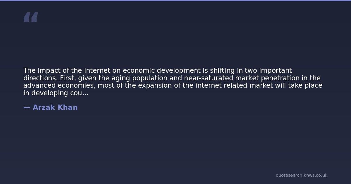 The impact of the internet on economic development is shifting in two important directions. First, given the aging population and near-saturated market penetration in the advanced economies, most of the expansion of the internet related market will take place in developing countries like Pakistan, India, and Bangladesh. Secondly, the globalization of the internet is expected to increase the share of developing countries in the internet economy presenting a historic opportunity for the young and poor in Pakistan to improve their economic condition.