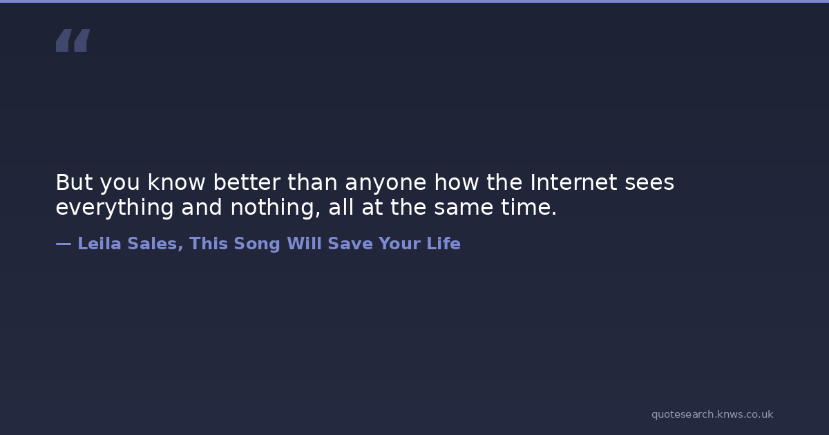 But you know better than anyone how the Internet sees everything and nothing, all at the same time.