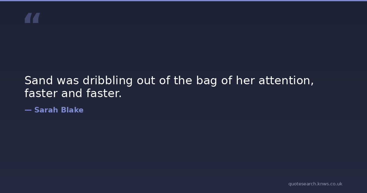Sand was dribbling out of the bag of her attention, faster and faster. distraction metaphor Download Image Share on X Share on Facebook Copy Link
