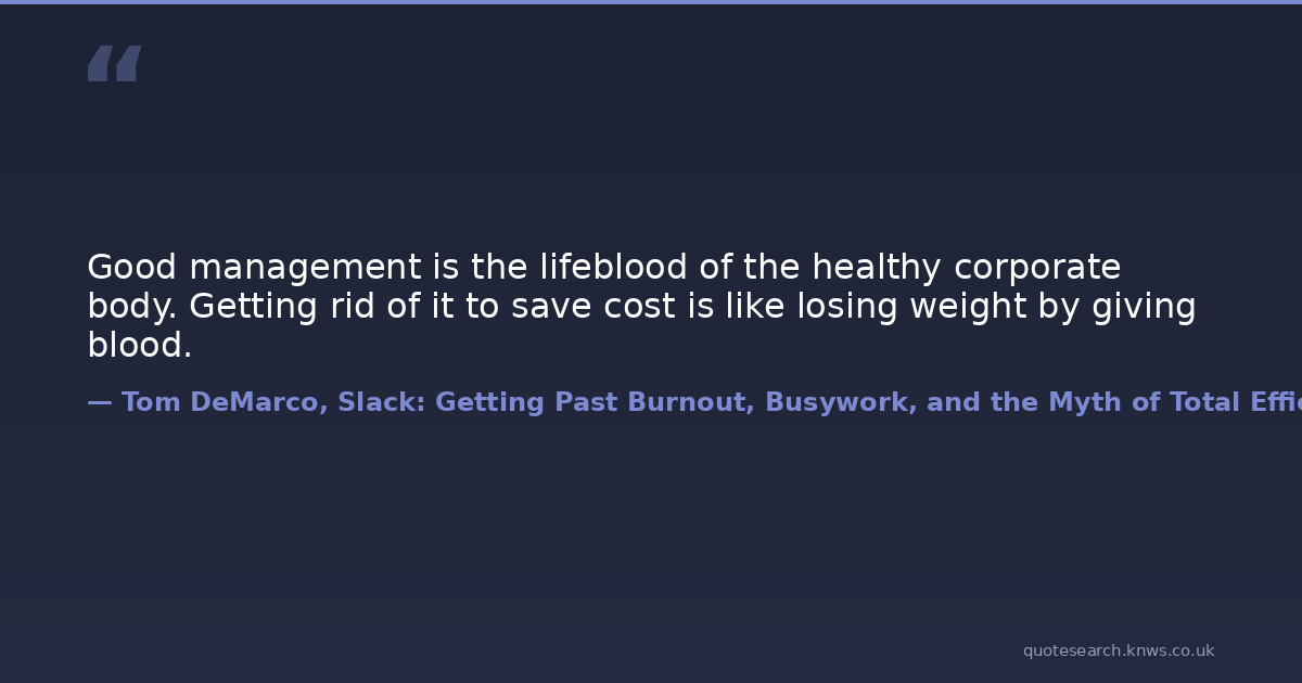 Good management is the lifeblood of the healthy corporate body. Getting rid of it to save cost is like losing weight by giving blood.