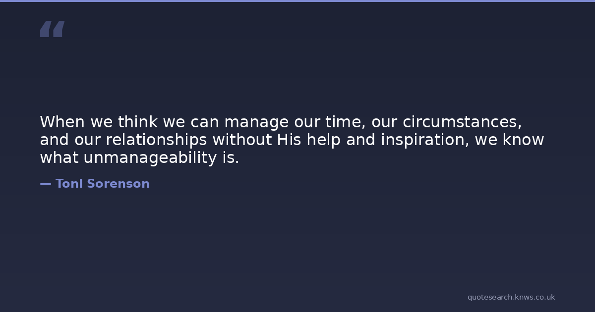 When we think we can manage our time, our circumstances, and our relationships without His help and inspiration, we know what unmanageability is.