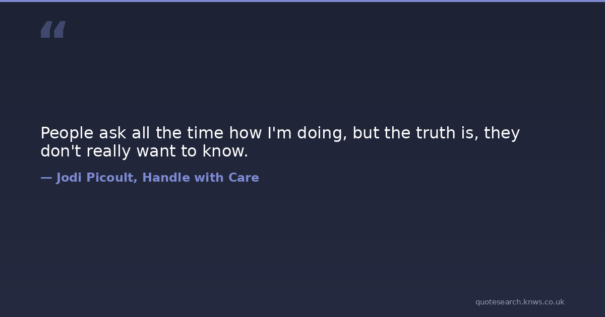 People ask all the time how I'm doing, but the truth is, they don't really want to know.