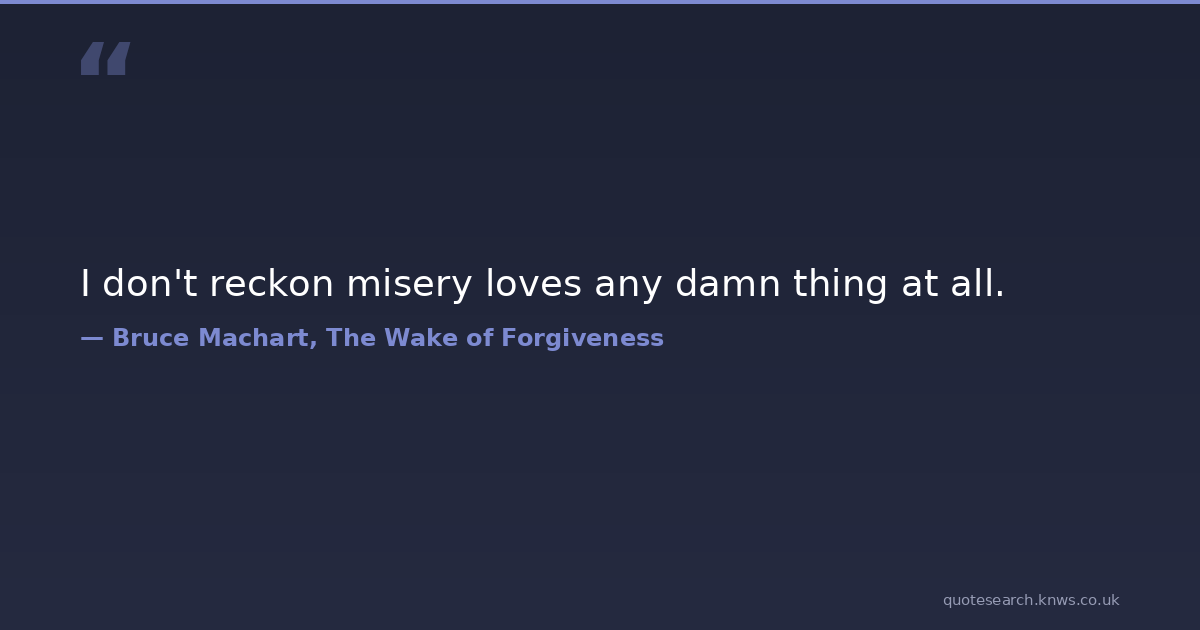 I don't reckon misery loves any damn thing at all. loneliness misery philosophical truth Download Image Share on X Share on Facebook Copy Link