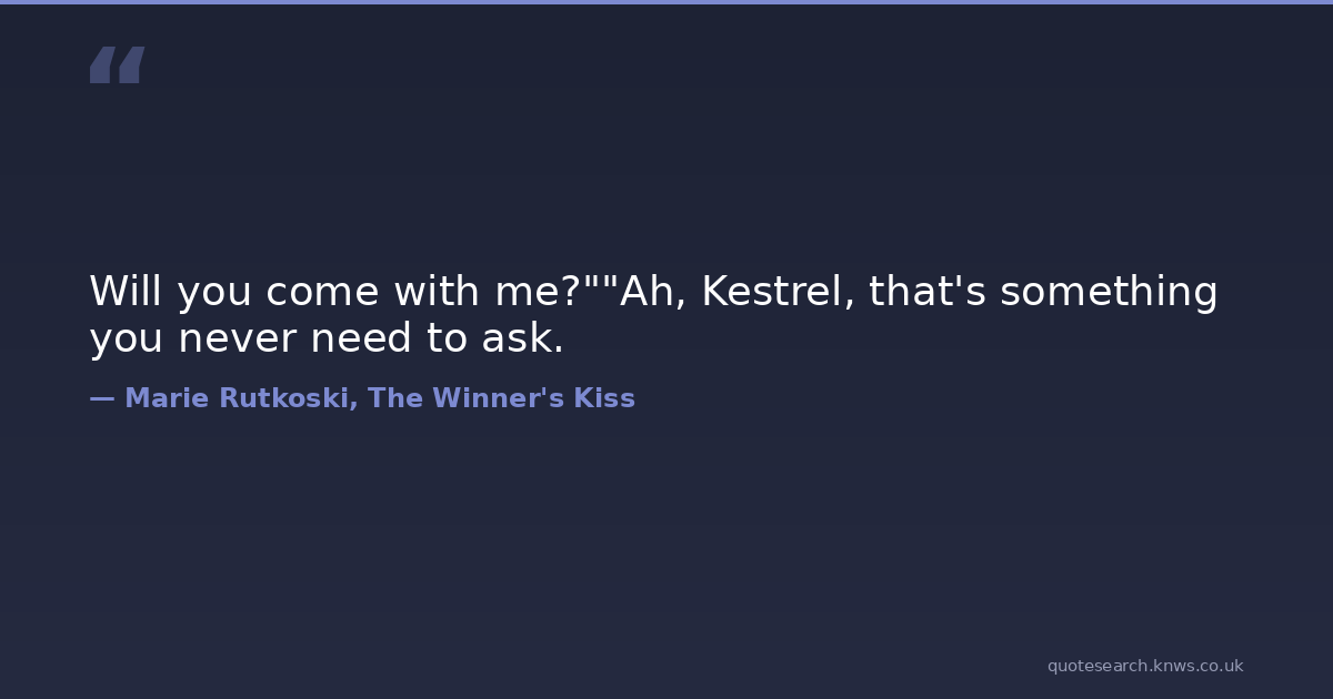 Will you come with me?""Ah, Kestrel, that's something you never need to ask.