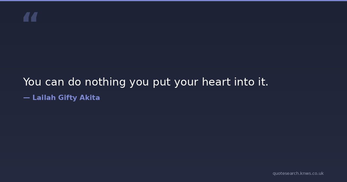 You can do nothing you put your heart into it. accomplishments-quotes achieving-excellence achieving-success dream-big success-strategies Download Image Share on X Share on Facebook Copy Link
