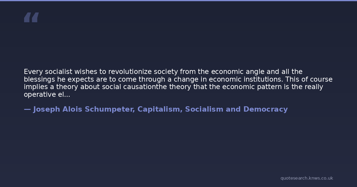 Every socialist wishes to revolutionize society from the economic angle and all the blessings he expects are to come through a change in economic institutions. This of course implies a theory about social causationthe theory that the economic pattern is the really operative element in the sum total of the phenomena that we call society.