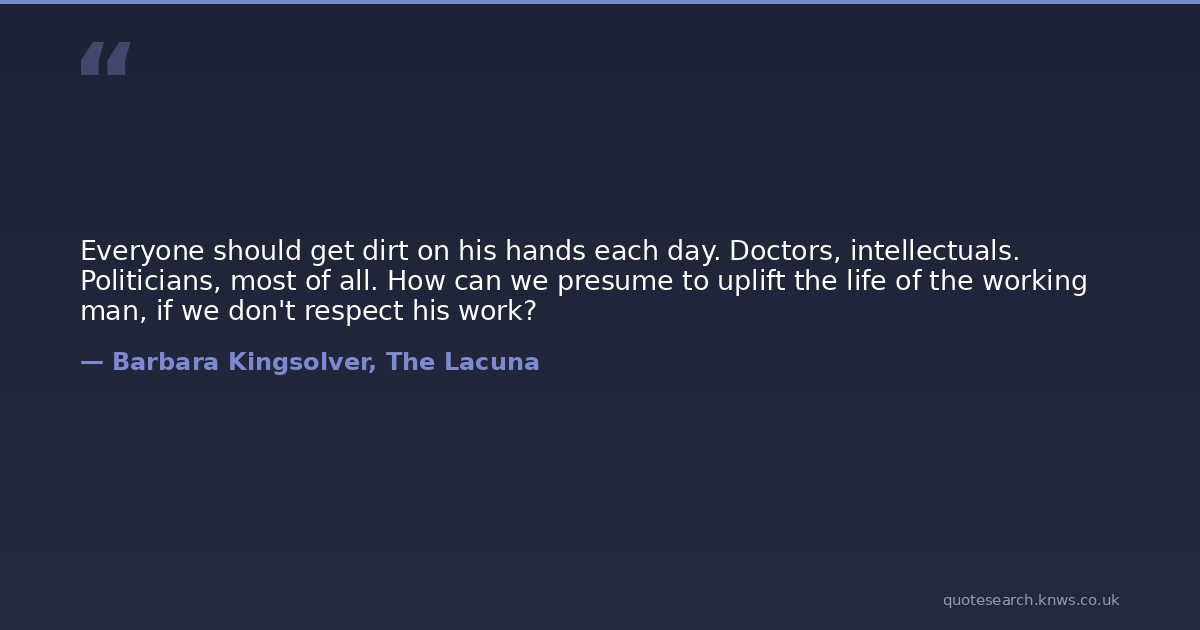 Everyone should get dirt on his hands each day. Doctors, intellectuals. Politicians, most of all. How can we presume to uplift the life of the working man, if we don't respect his work?