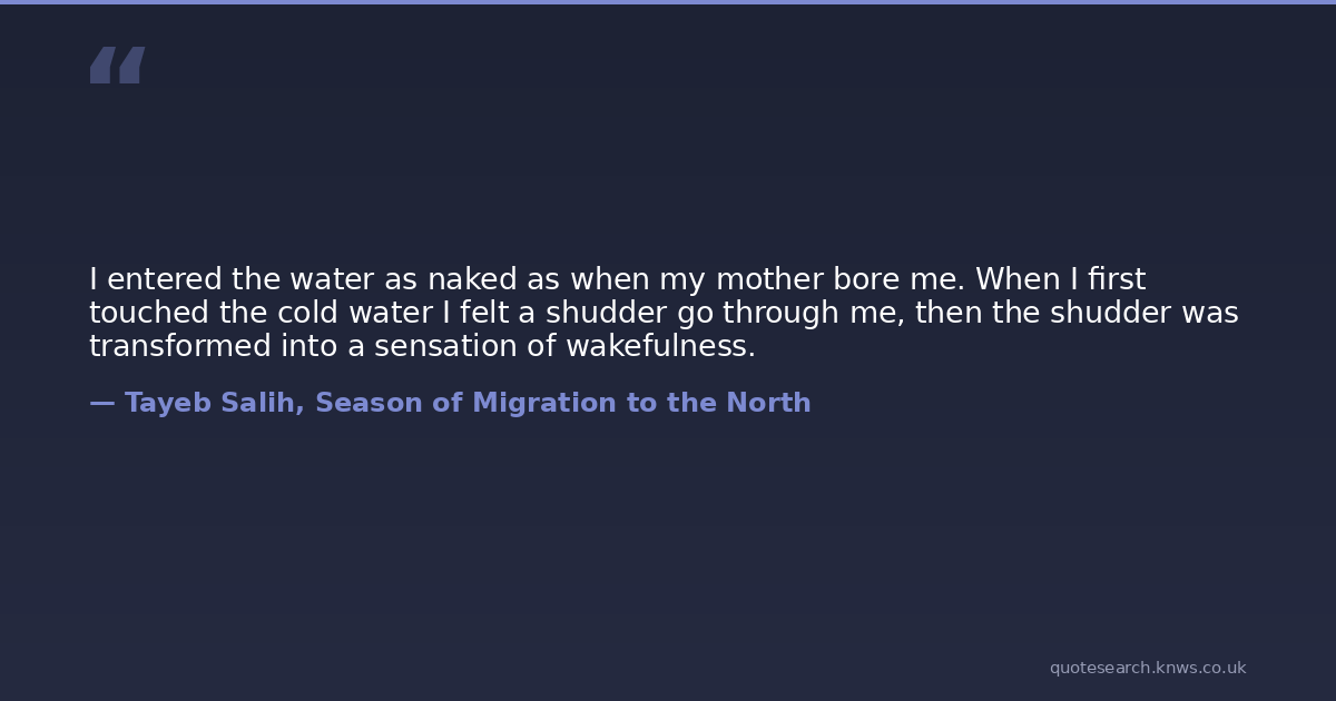 I entered the water as naked as when my mother bore me. When I first touched the cold water I felt a shudder go through me, then the shudder was transformed into a sensation of wakefulness.